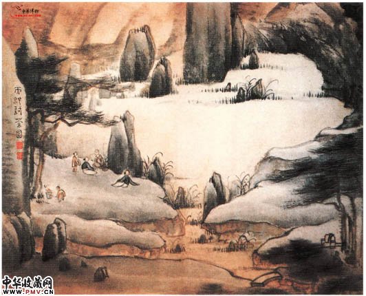 此册为作者未病臂前右手作品,共四幅"柳园图意",绘春日园林风貌,在松、竹等树的衬托下将初绽新绿的柳色表现得淋漓尽致。第二幅"弘济江天",是夏天的江河之景,岸边树丛生得十分茂盛,形成实虚疏密的对比。第三幅:"西亭诗思",表现秋风芭蕉林。第四幅"绿云苍雪",描画冬时山景,山石被雪层层遮盖,而石缝中所生之松树却依然挺立,保持绿云本色。