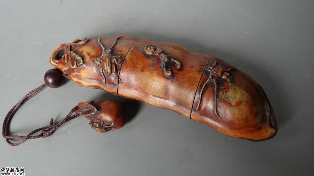民国 竹刻褔豆香筒