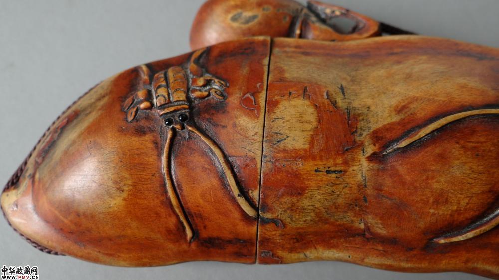 民国 竹刻褔豆香筒 长17cm,完好。