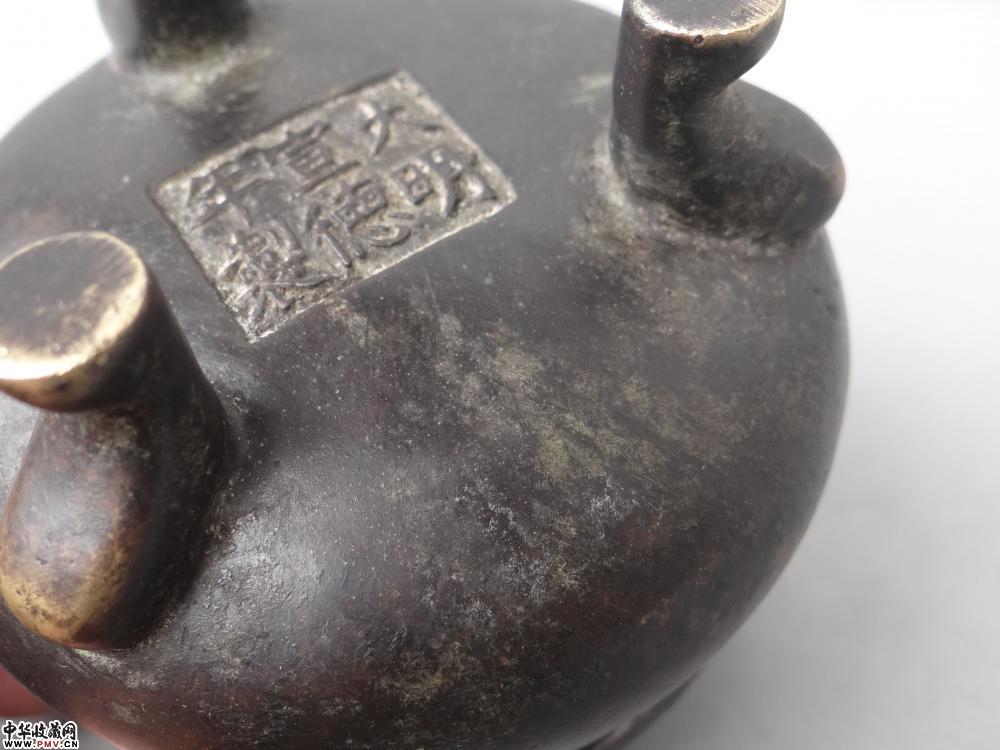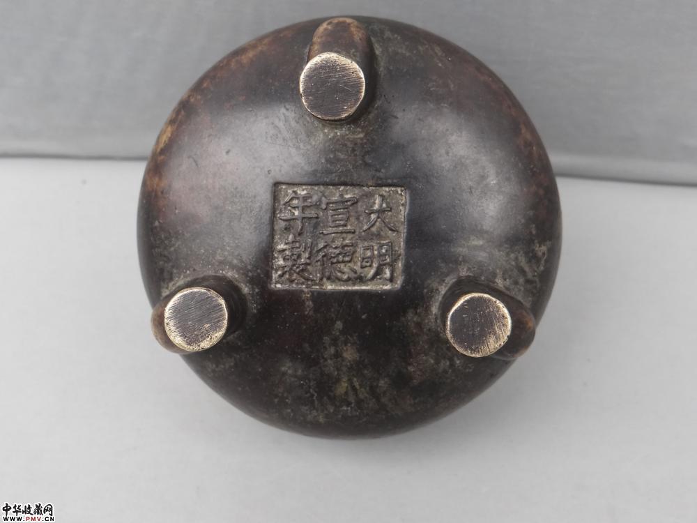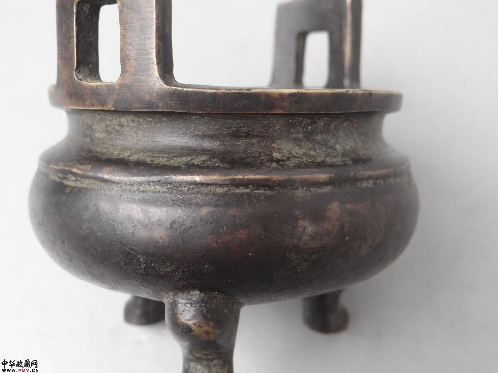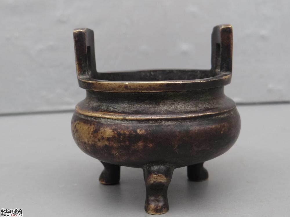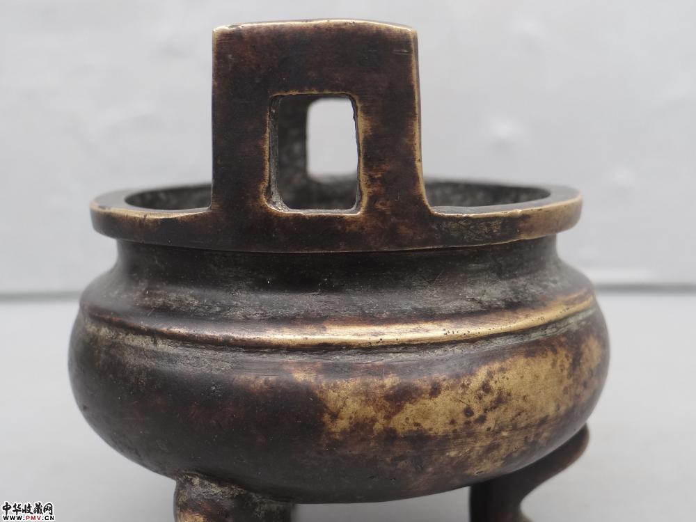 清 铜三足鼎式炉 高8.0cm,直径7.2cm,完好。