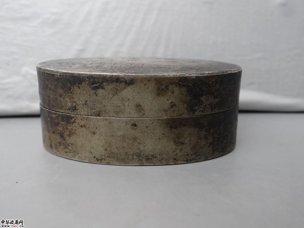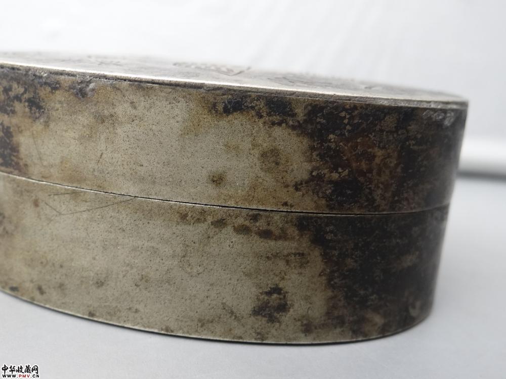 民国 “吉祥”款白铜刻诗文墨盒,规格:8.1x5.8x3.2cm