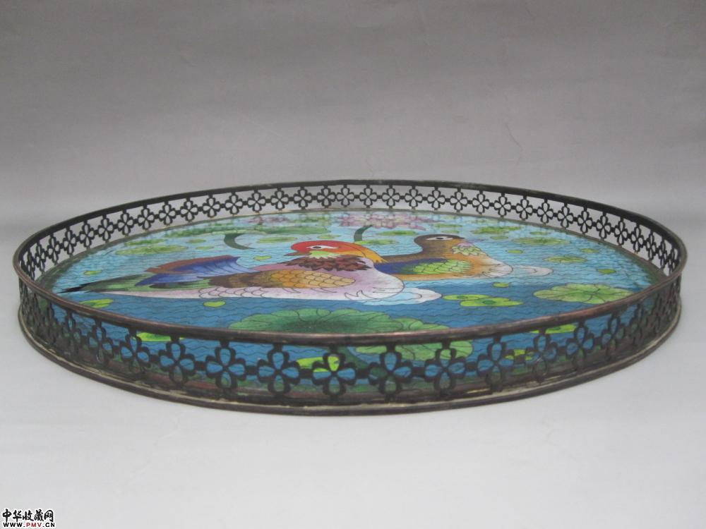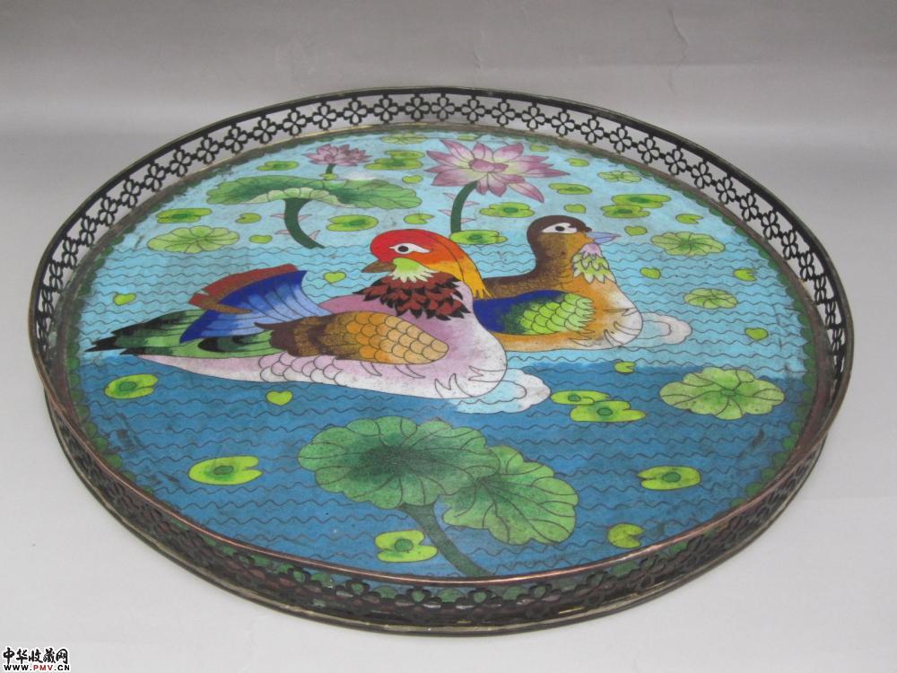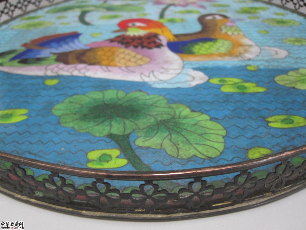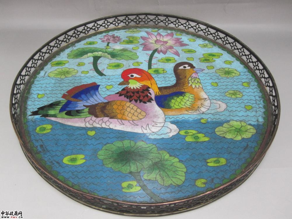 清铜胎景泰蓝荷塘鸳鸯图大盘《已售》