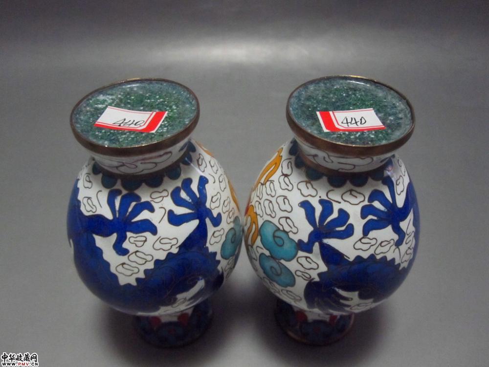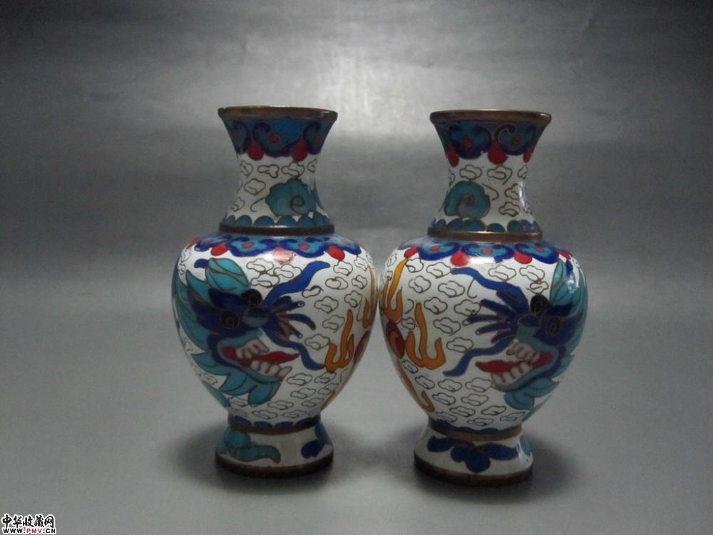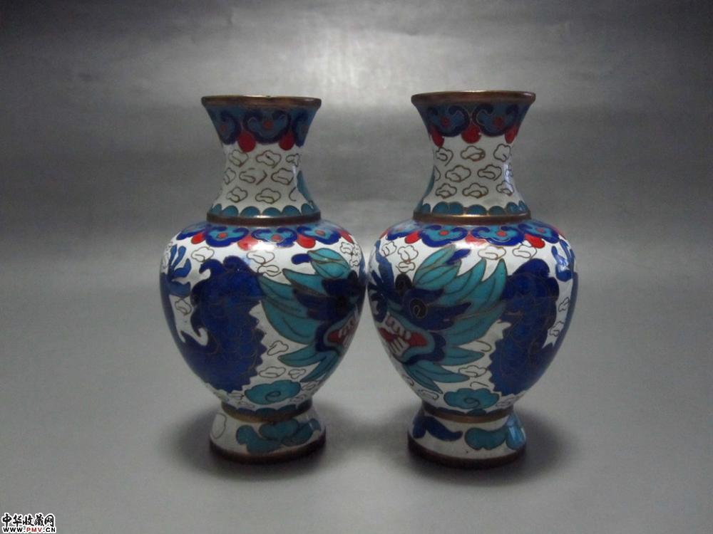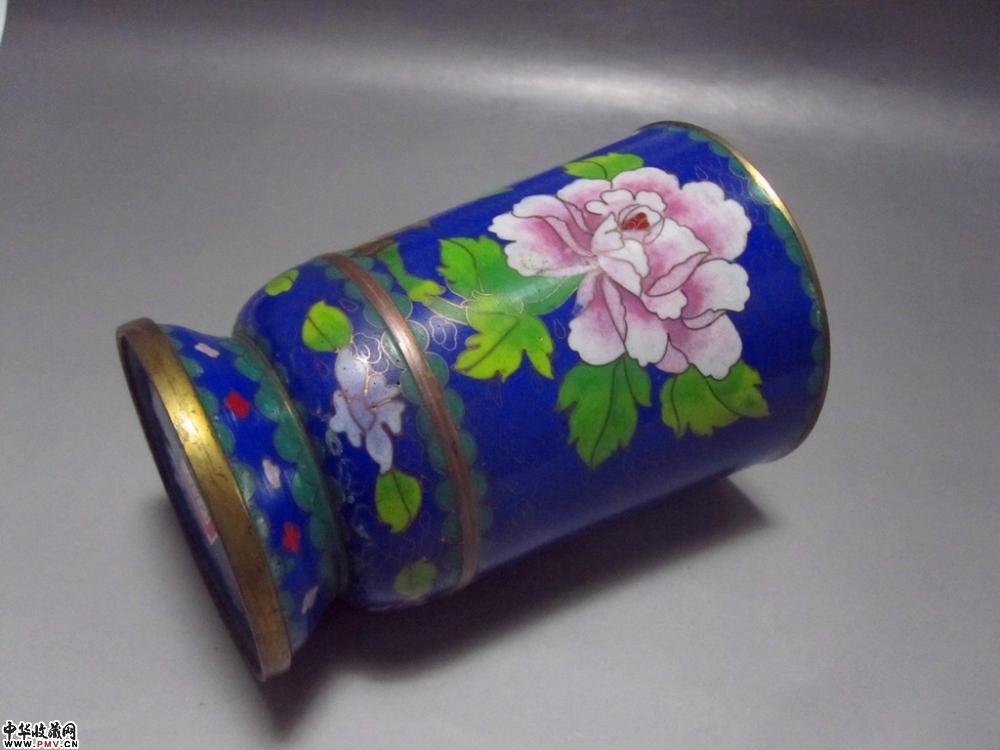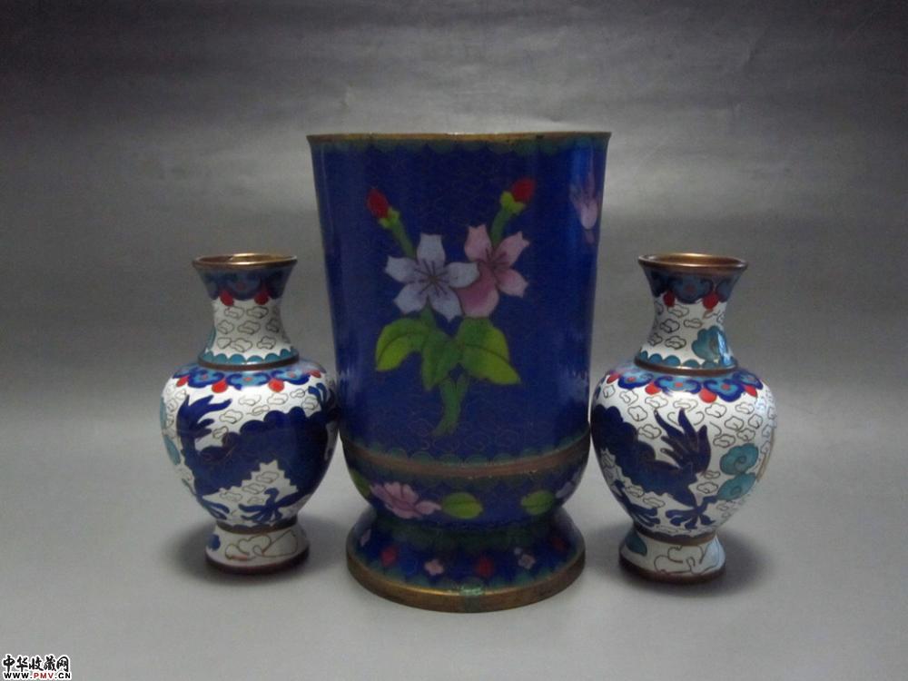 民国景泰蓝牡丹花纹笔筒龙纹赏瓶【三件】《已售》
