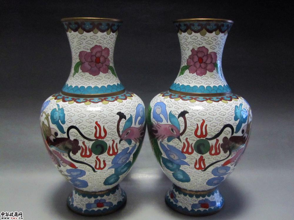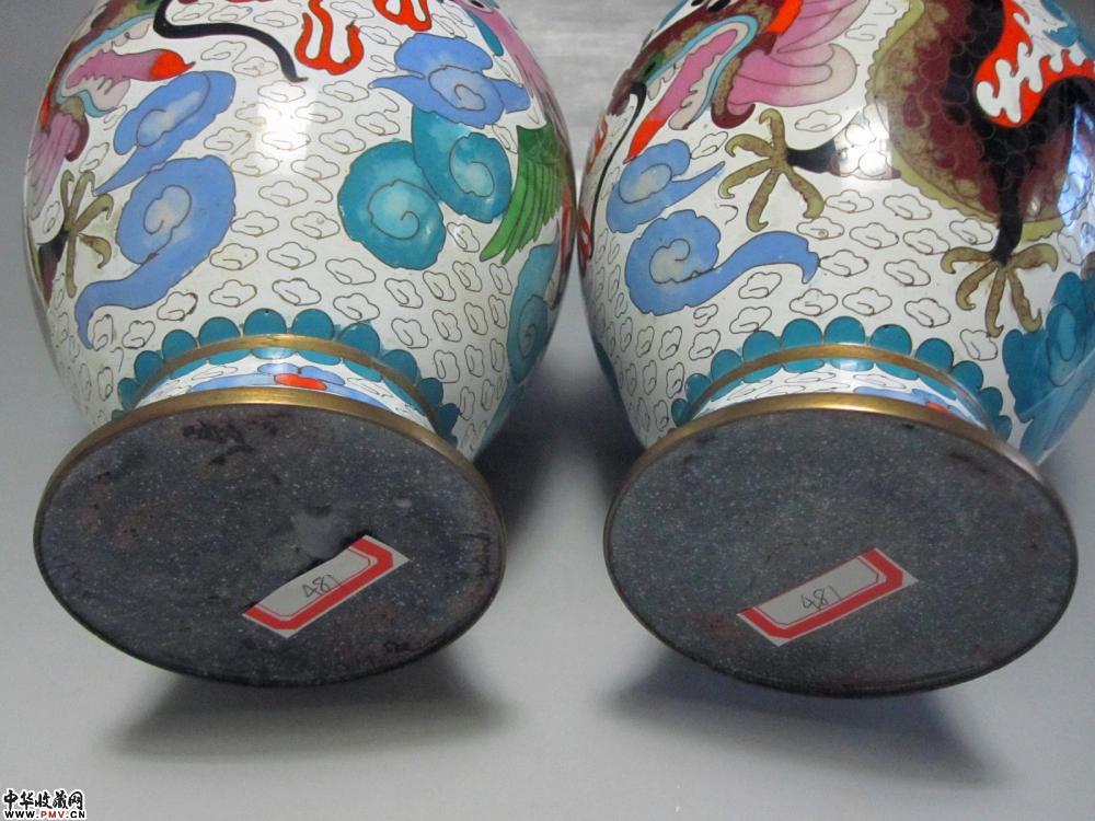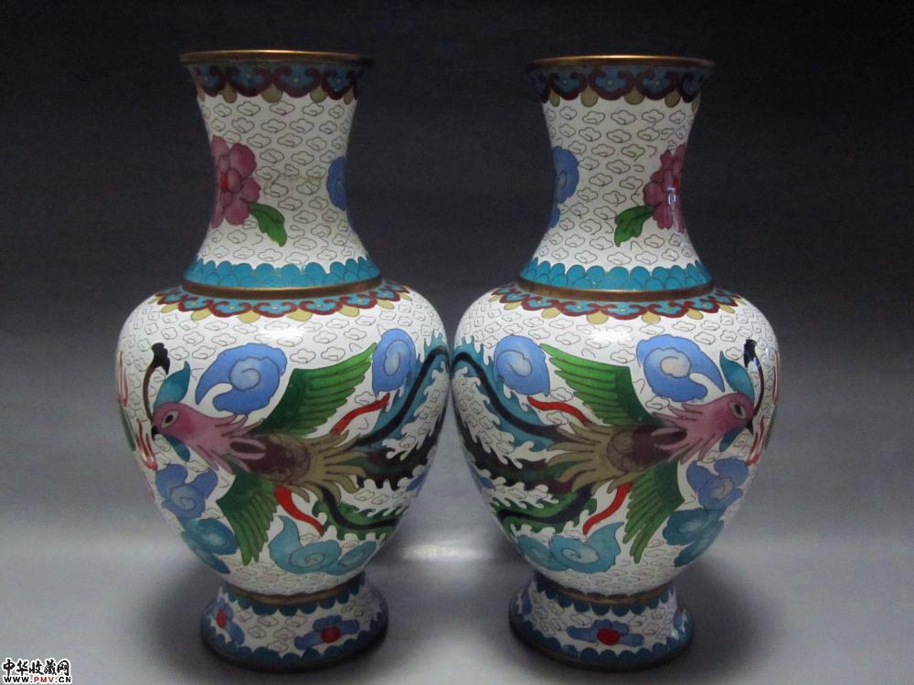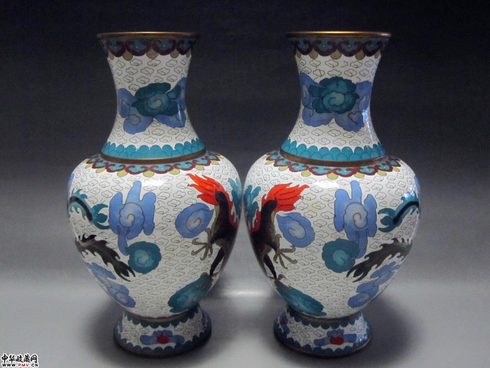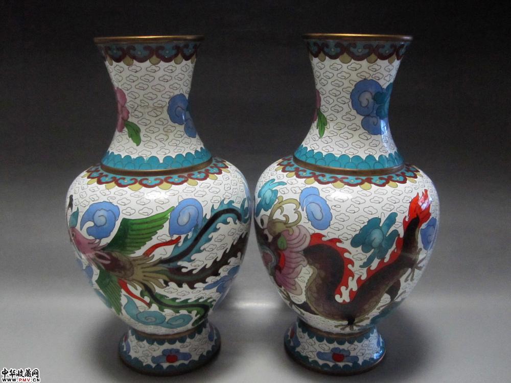 民国至解放初景泰蓝龙凤纹赏瓶一对《已售》