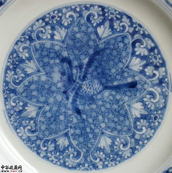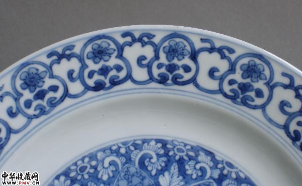 康熙花草款青花团花纹盘