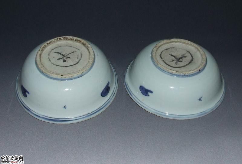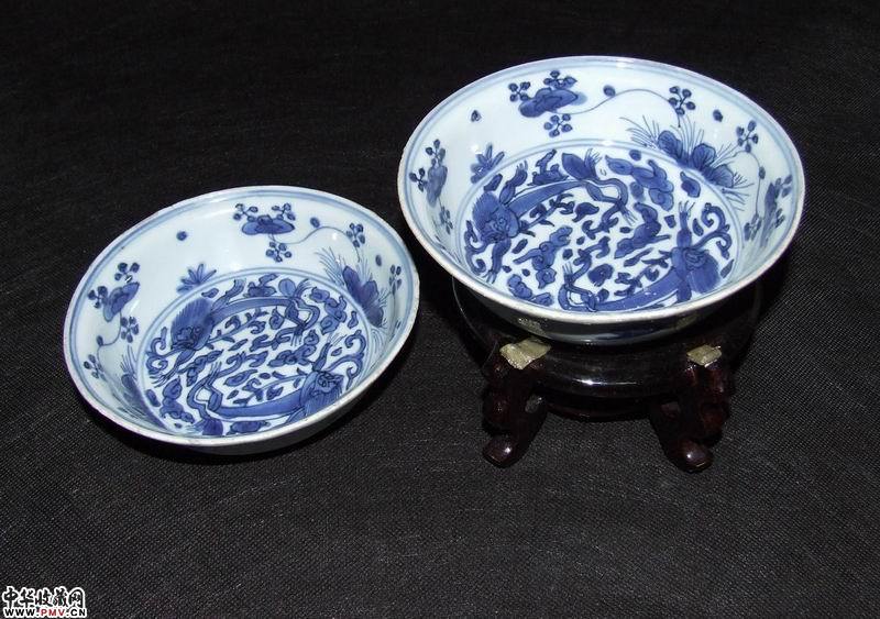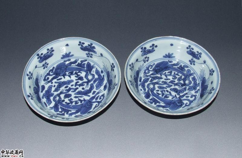 万历双螭穿花青花深盘一对