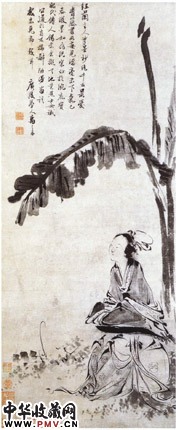 《芭蕉仕女图》就是采用兰叶描来描绘仕女形象,笔触写意而灵活,人物很是生动传神。