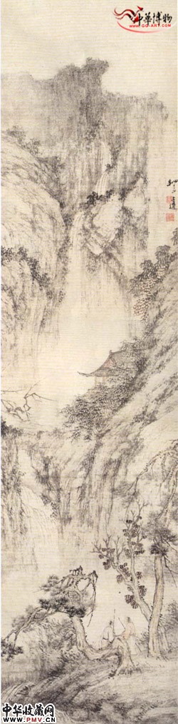 清 万上遴 山云听瀑 轴