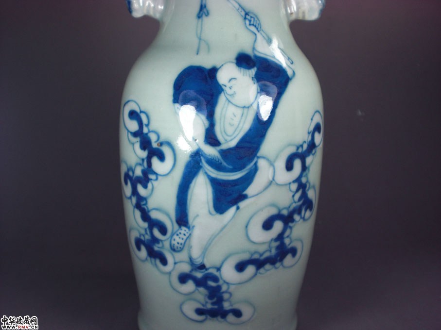 嘉庆青花人物双狮耳瓶