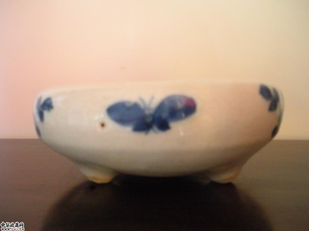 明.天启哥釉花蝶三足洗