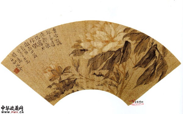 画家自题:"香雪笼烟春淡粕,粉痕浥露玉玲珑。"画面绘一折枝牡丹,香气四溢,薄雾轻笼,花枝招展而又不事张扬,画面既有明代花鸟画的热烈灿烂,又不乏宋人的含蓄沉秀。