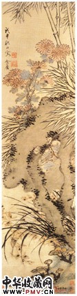 【说明】 纸本设色 纵120.9厘米 横30.3厘米