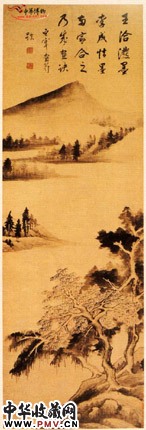 董其昌 仿倪瓒山水 立轴 水墨绢本