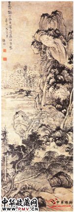 画上自题:"坐茂树以永日,濯清泉以自洁,摹燕文贵笔,恽向。"在这幅画中画家借诗文的意境抒发自己高洁不俗,寄情林泉,怡然自乐的心情。在艺术表现手法上,恽向的这幅作品笔墨苍润,用悬腕中锋,以划书的骨力入画,圆珠笔劲雄健,如评者所云有:"嫩处如金。秀处如铁"之称。