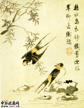 余省 丙子(1756年)作 芙蓉鸳鸯 立轴 水墨纸本