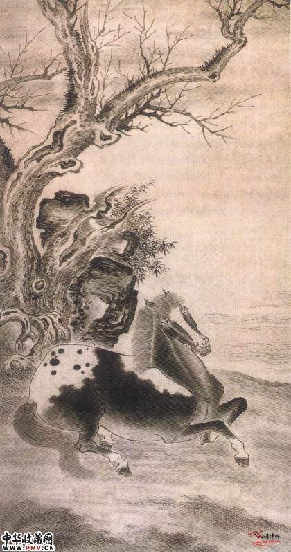 清张穆 古木名驹图