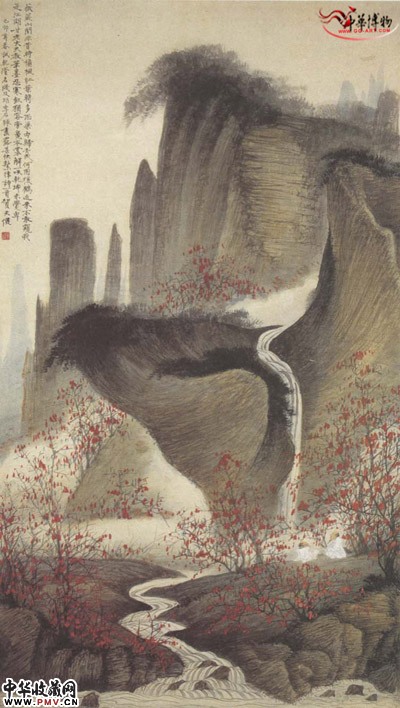 近现代贺天健 秋林枫叶转多思