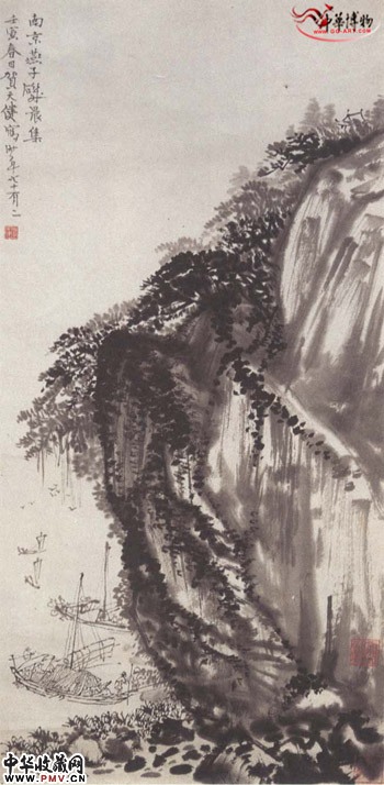 近现代贺天健 南京燕子矶晨集归