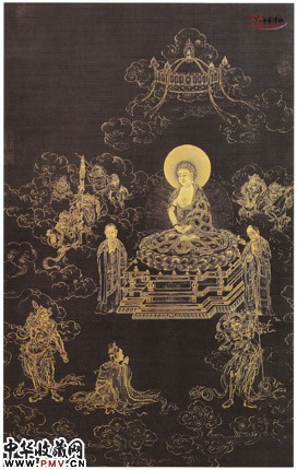 此图虽题为无量寿佛图,其实应为如来佛图。慈眉善目,金光闪耀,给观者以极为炫目的视觉冲击力。
