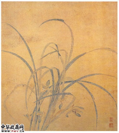 《双乐观兰花图》是出作者自心枢的清新之作。虽然还是缺乏文人画兰的清幽淡泊,设色却很是清雅,笔锋也妩媚多姿,是难得一见的仇英花鸟画。