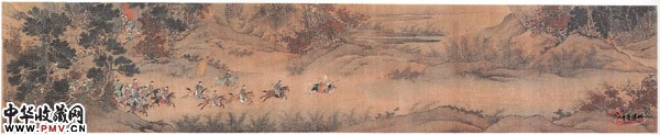 仇英一生创作的大部分作品为临古之作,《丹青志》评为“粉图黄纸,落笔乱真”,达到“精丽艳逸,无渐古人”的精熟水平。相对来说,却缺乏创造性。此图取景宏阔,结构严整,人物刻画精细,位置显著。在驾驭复杂场景,安排主次方面,反映出画家精深的造诣。
