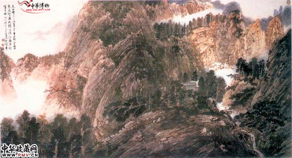江兆申 1977年作 云溪渔隐图 立轴 设色纸本