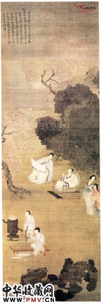 这幅作品笔墨精妙,设色淡雅,有缥缈空灵之感。在具体表现上,衣纹做颤笔描,其颤笔描。抖动多变,折而不滞,颤而不散,加强了衣服的质料的柔软质感和随风飘曳的动势,形成了一家风格。