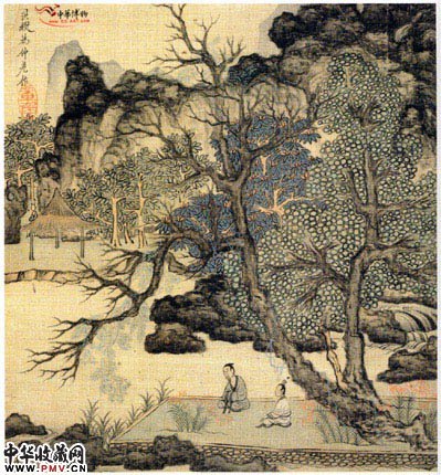 明陈洪绶 杂画册“桐荫抚琴图”