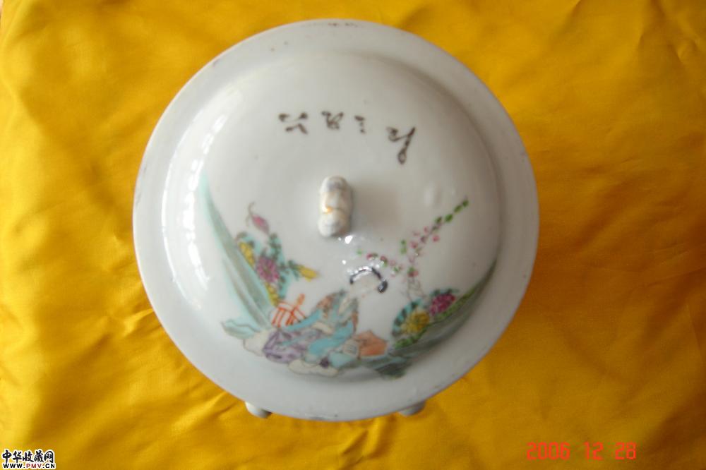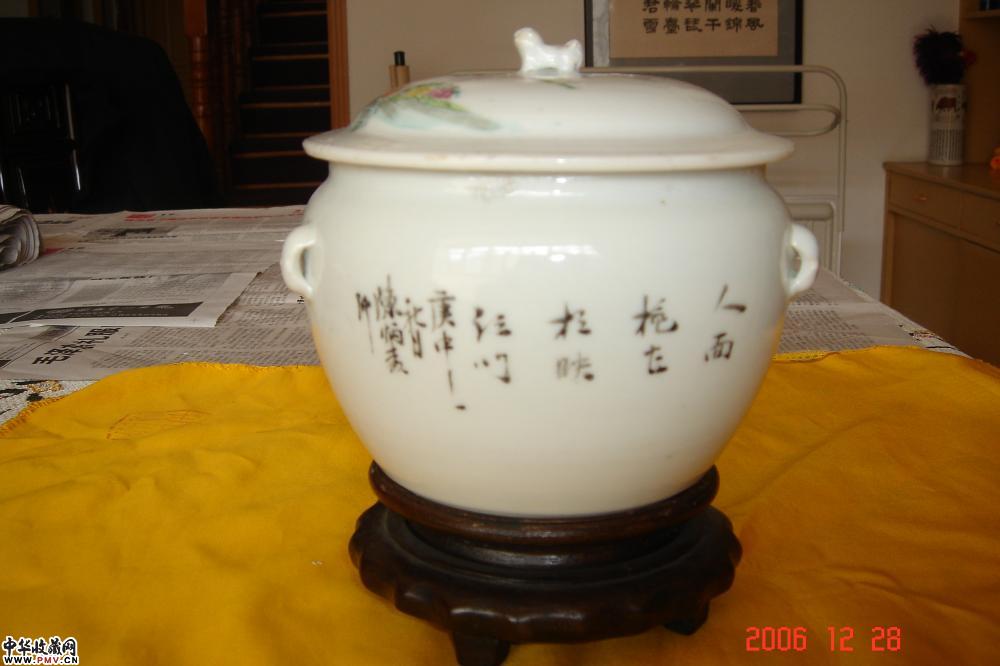 民国 1920年 桃花美女图 粉彩粥罐 [人面桃花相映红句 庚申年之秋月 陈炳寿作]
