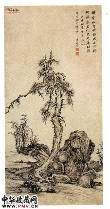 明李永昌 松石图轴