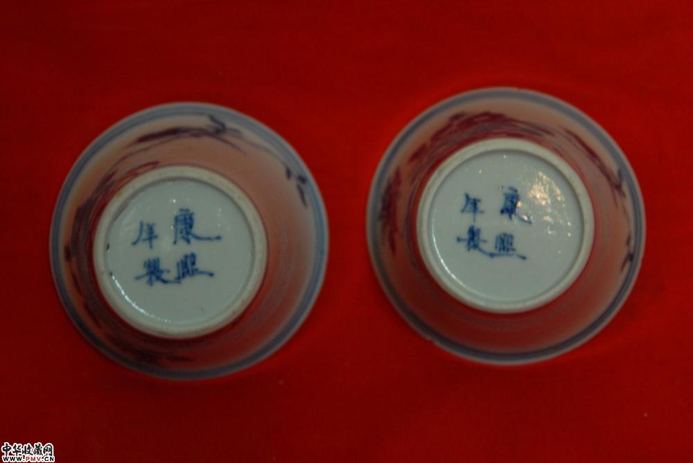 绘画娴熟生动,用笔老到,青花发色淡雅,圈足细腻规整,器样呈马蹄型,径7cm,底书康熙年制楷书款,一只口有微伤!!