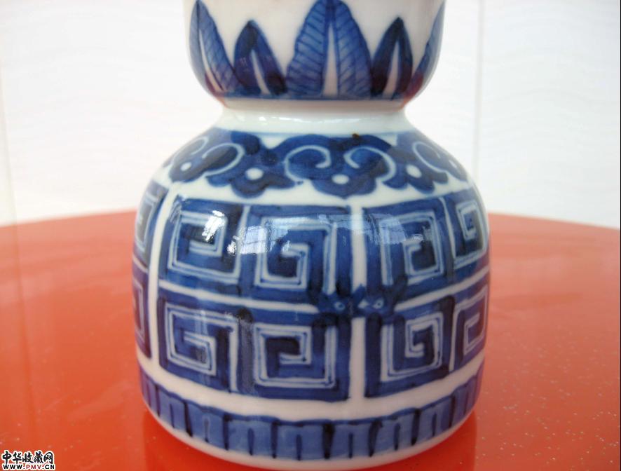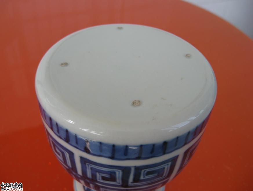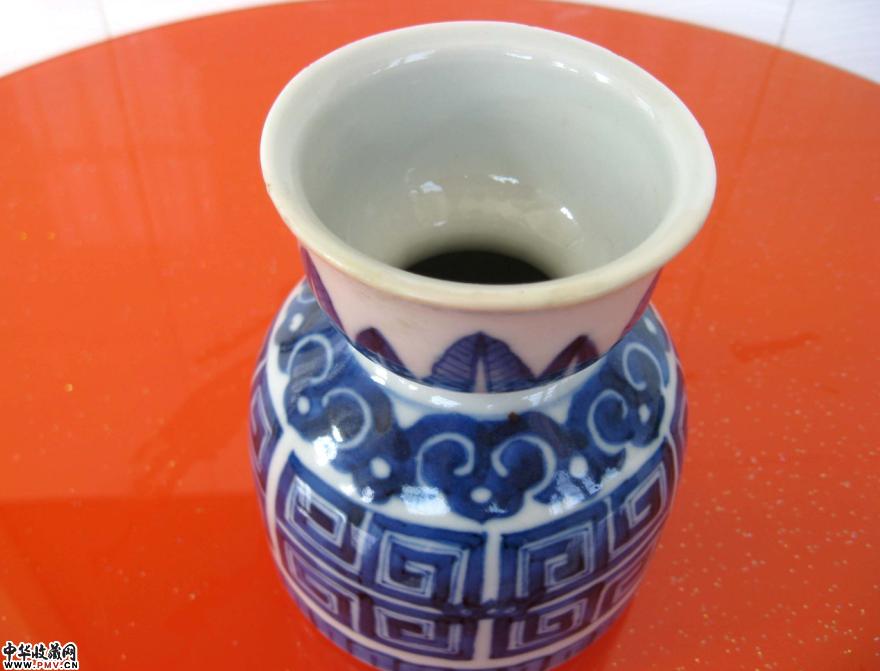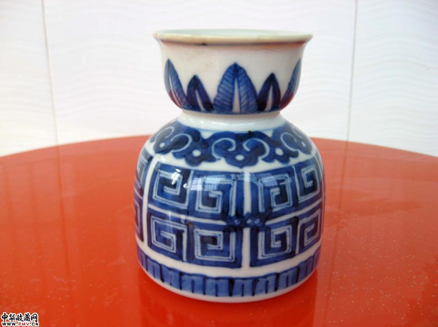 高10厘米,青花发色纯正艳丽深沉,釉水润亮,自上而下绘焦叶纹 如意头纹 回纹兽面纹 最下层绘变形莲瓣纹,画工细腻流畅,通体裹足支钉施釉,,时代特征明显,是一件难得的青花高档细路瓷器。口部有米磕修,如图,其它完好!实物比图片要漂亮的多!