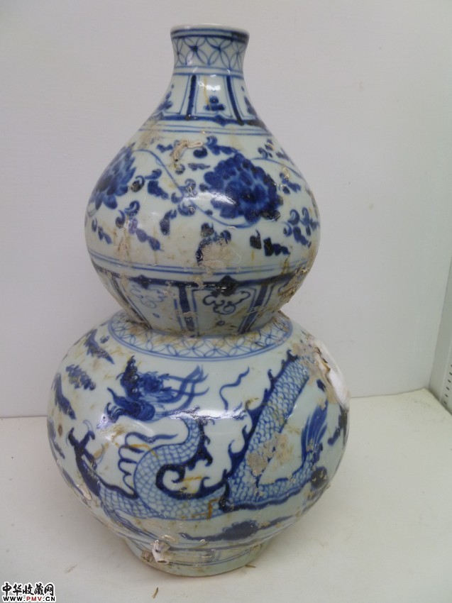海捞明早期青花龙凤纹葫芦瓶