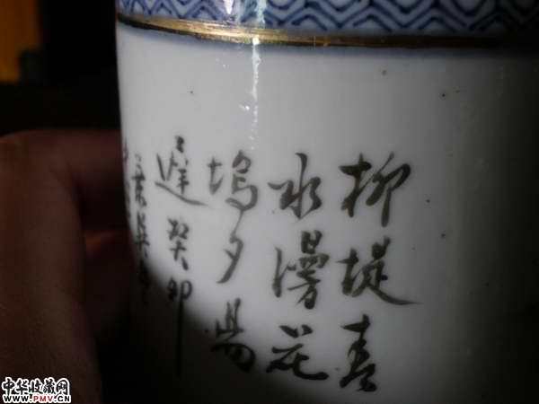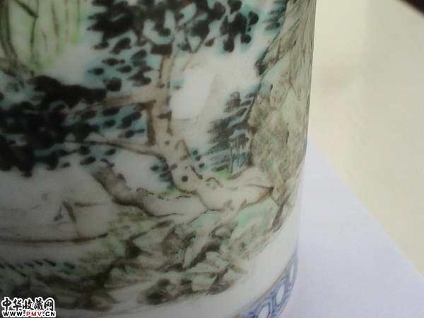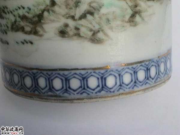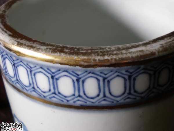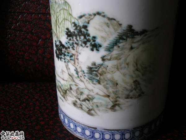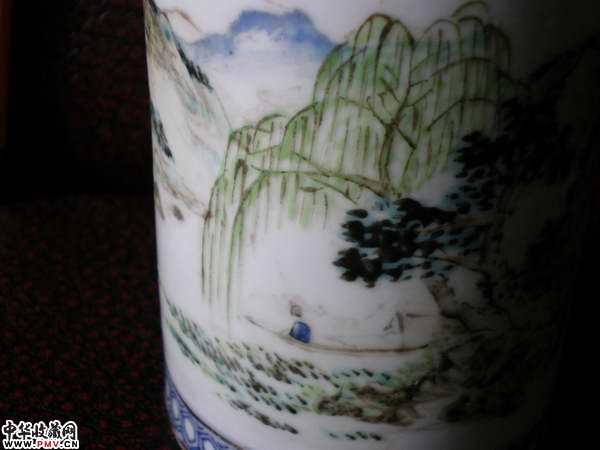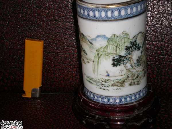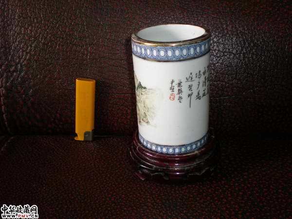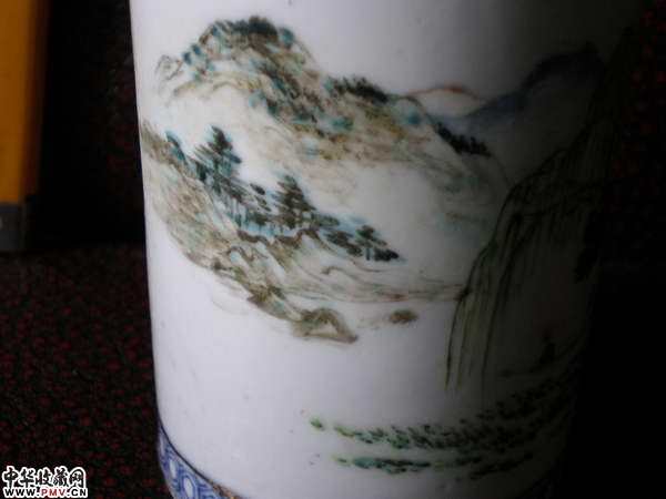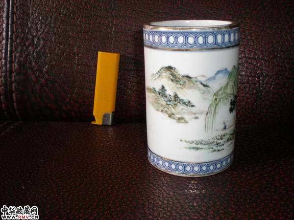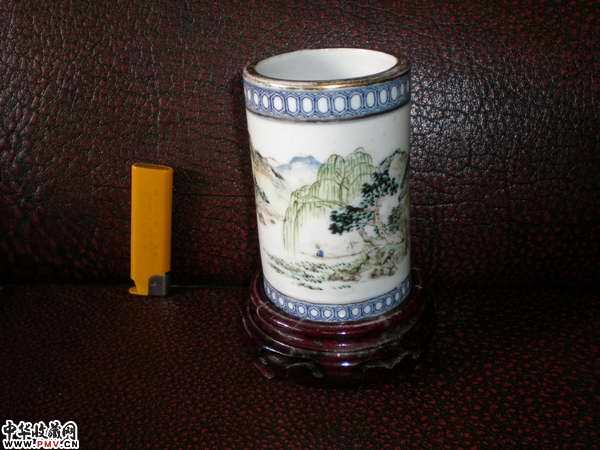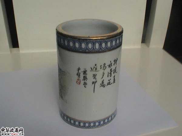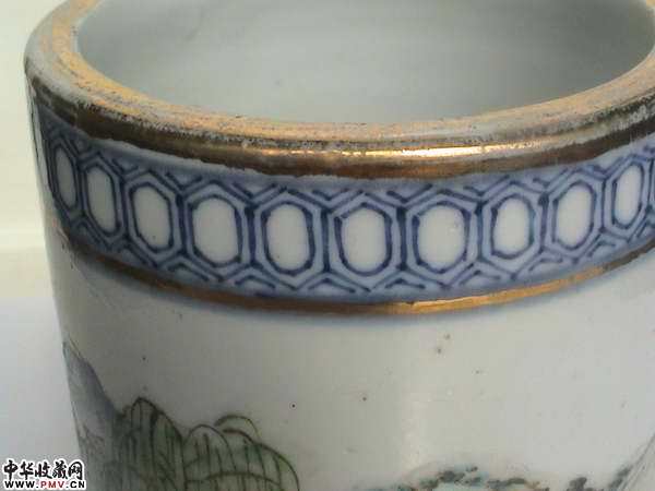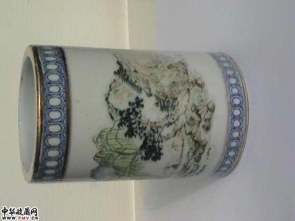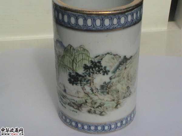 光绪名家浅降青花描金笔筒