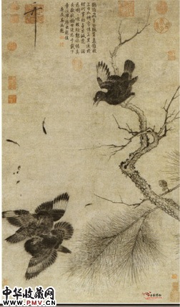 宋赵佶 腊梅山禽图(轴)
