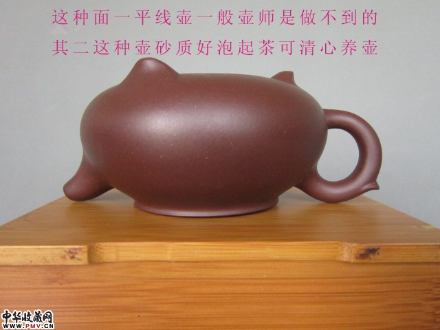 描述:面三点一平线做工精致,口径6.5厘米,高8厘米,全品好壶不多说,喜欢的不要错过,赠漂亮礼品盒,价格1200元。