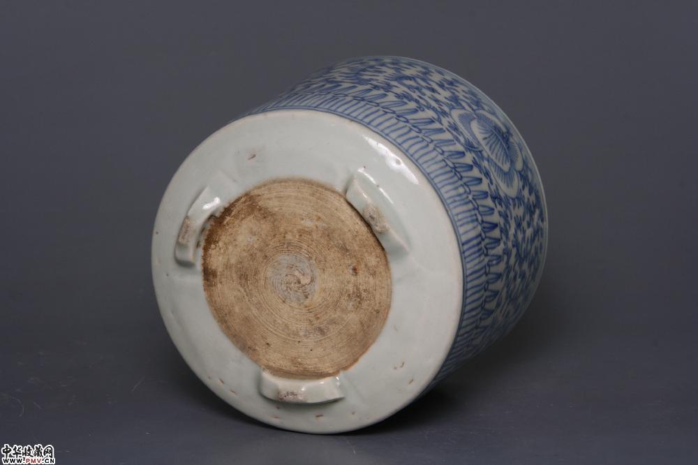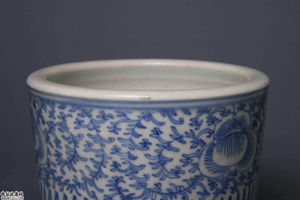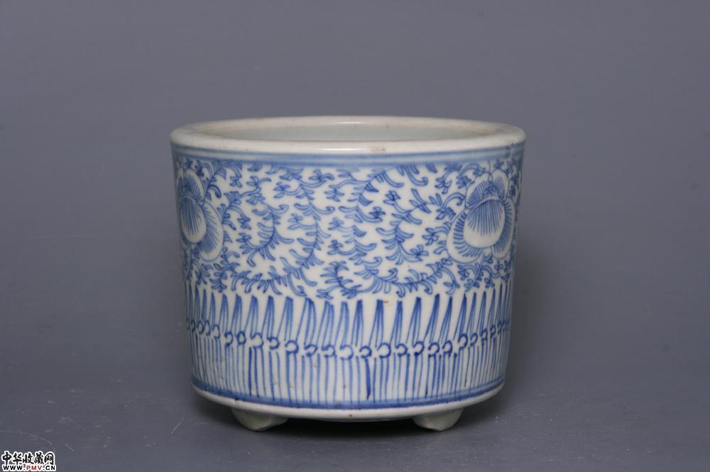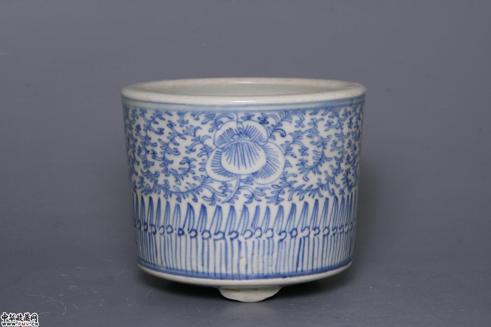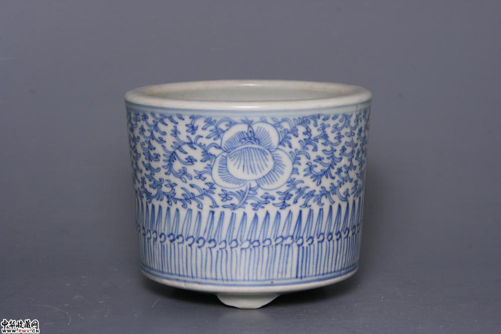 清嘉庆景德镇窑青花淡描缠枝牡丹纹三足筒式炉