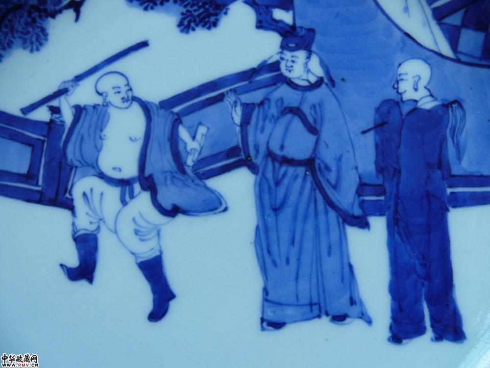画意为《西厢记》人物故事“惠明投书”,画面左为明惠,中为张君瑞,右为法本方丈。