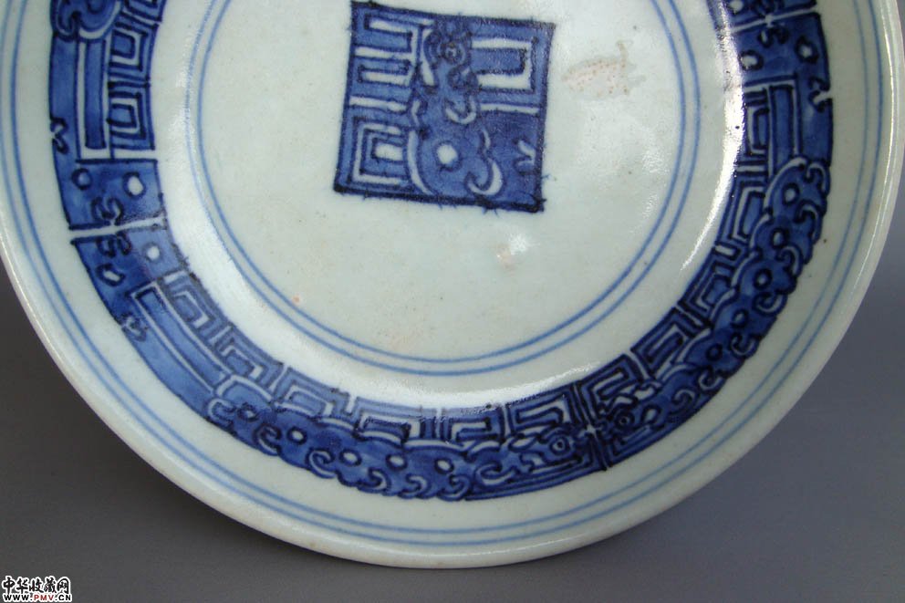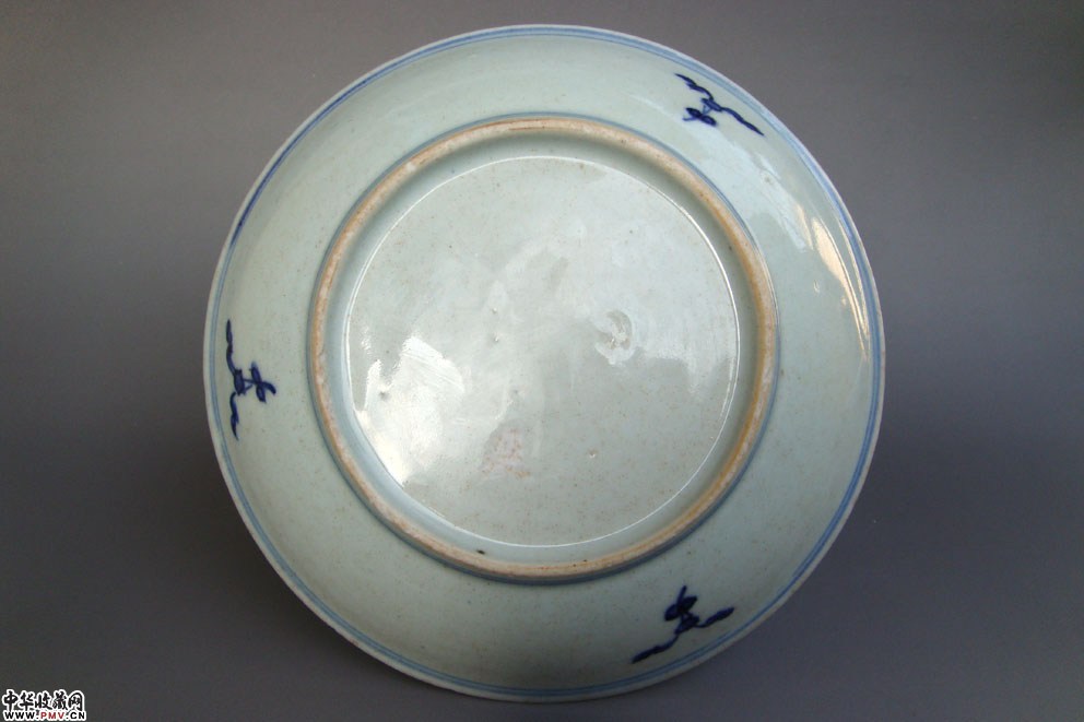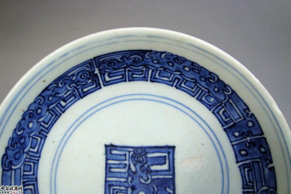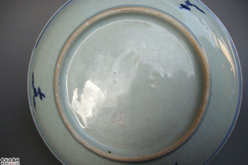 口径15厘米,口沿2个小飞皮,正反面各一小刻字!其它完好!