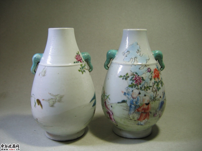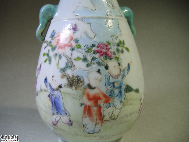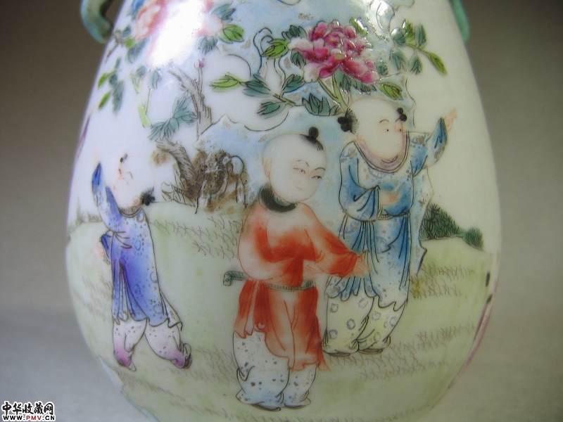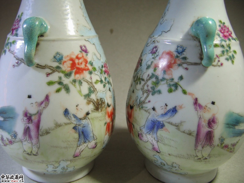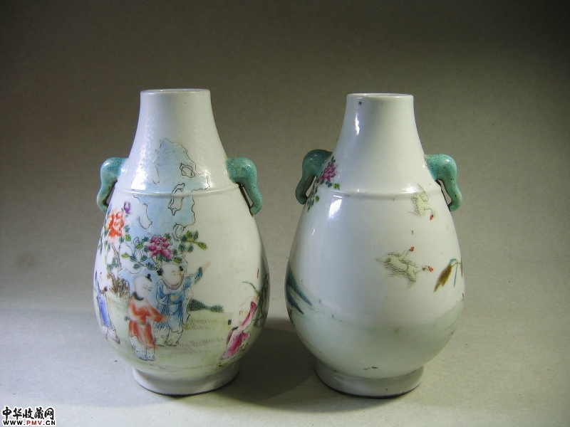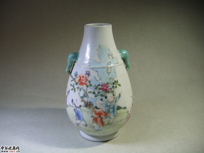 价格、尺寸、品相等清 粉彩婴戏纹象耳尊完整器,高19CM。
