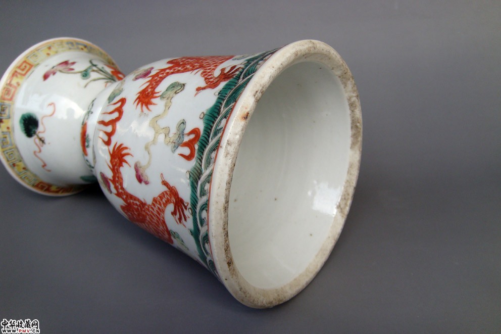 高19.5厘米,口沿一磕皮和一2厘米线,最上端外侧一磕皮!双龙戏珠,五爪龙,传世品保存实为不易,值得珍藏!