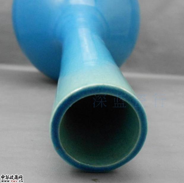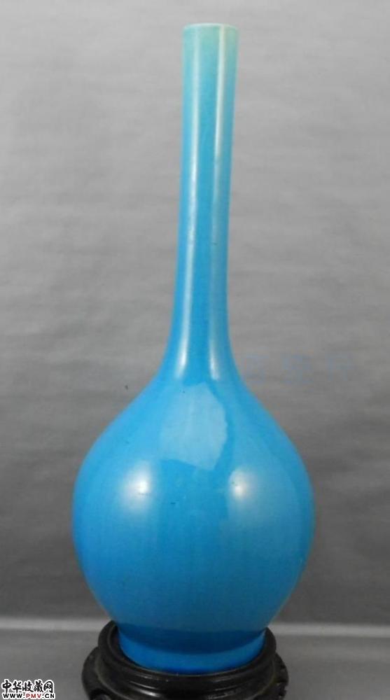 清晚期孔雀蓝釉长颈大胆瓶,高37cm,全品.