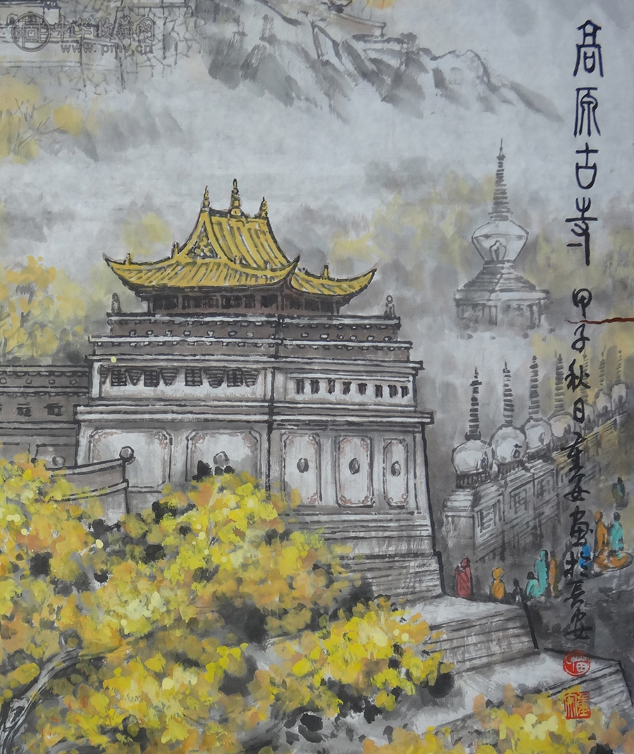 苗重安 (1938-) 高林古寺图 68.5x79cm