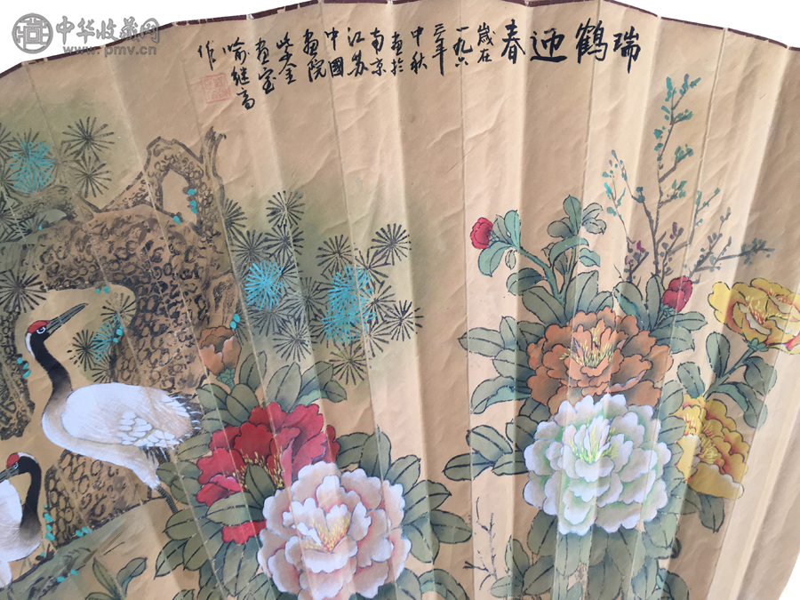 喻继高 《瑞鹤迎春》大扇面 195x68(cm)