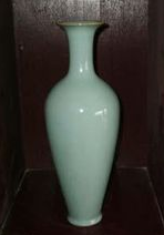 瓶的一种式样。撇口,短颈,丰肩,肩下削瘦至足,足内凹,器身细长,形似柳叶,故又有"美人肩"之称。清代康熙景德镇窑创制,康熙豇豆红釉柳叶瓶,是极为珍贵的产品。
