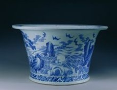 【名称】清康熙青花福山寿海图花盆