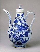 此器形为元代瓷器的流行样式,除青花器外,还见有龙泉窑青釉制品。造型源自阿拉伯民族使用的铜器。元代瓷器借鉴这种造型时,特别注意到吸取蒙古民族铜壶粗犷豪放的风格特点。