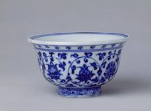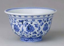 明人谷应泰撰《博物要览》一书中特别提到了这种杯:“若我永乐年造压手杯,坦口,折腰,砂足滑底。中心画有双狮滚球,球内”大明永乐年制“六字或四字篆书,细若米粒,此为上品;鸳鸯心者次之;花心者又其次也。杯外青花深翠,式样精妙,传世可久,价亦甚高。”在故宫博物院的藏品中,有双狮绣球内书年款和花心内书年款的永乐青花压手杯。另有杯心为鸳鸯卧莲图案者,系明万历时期仿制。此种品质精良且带有永乐年款的压手杯,故宫博物院收藏有4件。上一篇:元青花缠枝牡丹云龙纹罐
