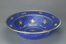 广珐琅是广州的金属胎珐琅工艺的一种,其主要作法是在金属胎上錾花,贴饰金银片花纹,再罩涂透明的珐琅釉料烧制而成。此面盆即是一件“广珐琅”的代表作品。