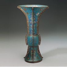 【器物名称】明景泰款掐丝珐琅龙凤纹觚